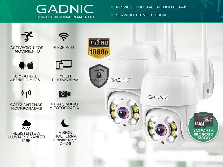 Mantén tu propiedad vigilada las 24 horas del día con las Cámaras de Seguridad Gadnic DM200W, una solución fiable y de fácil instalación. Especificaciones Resolución: 1920*1080 (Full HD) App: iOS & Android Capacidad máxima: 128GB Protocolos: HTTP; UDP; SMTP; FTP; DHCP; DNS; NTP; UPnP Wifi: 2.4GHz, 1...