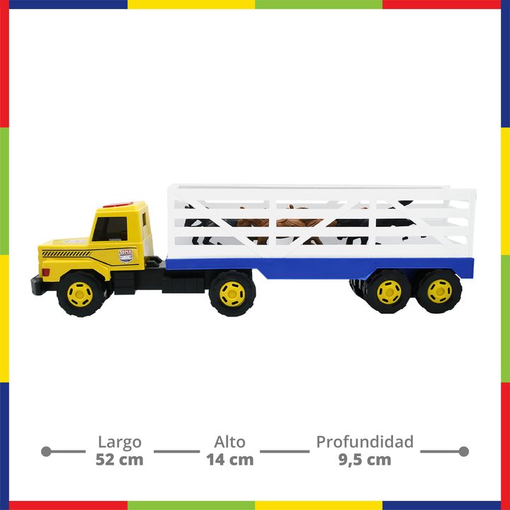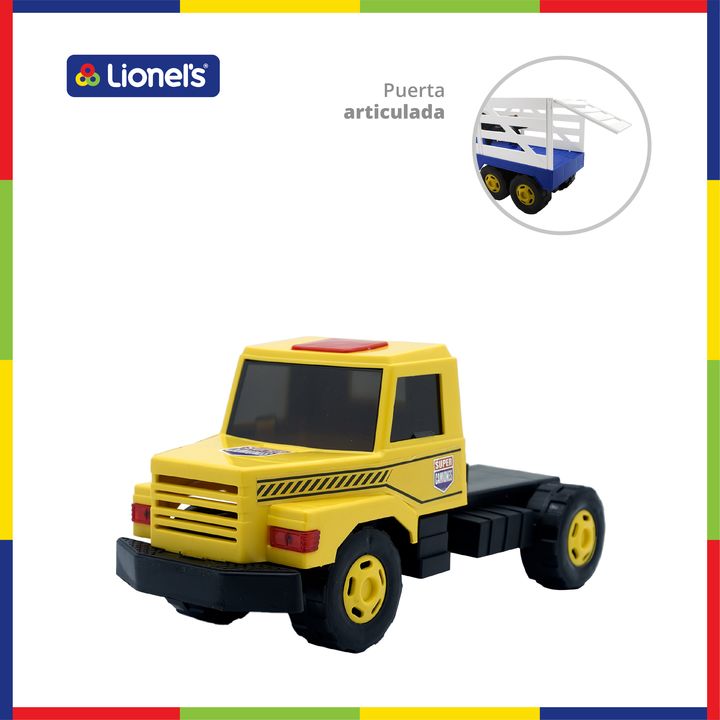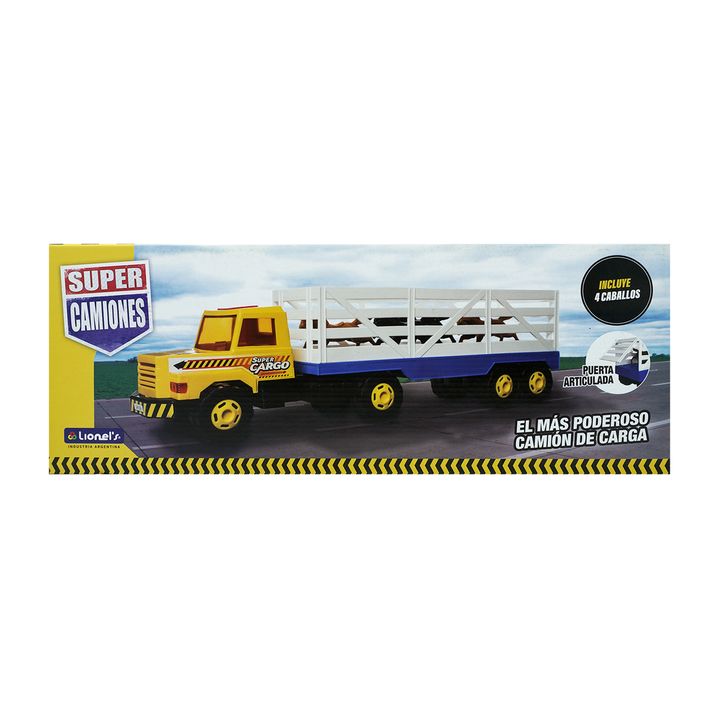 SUPER CAMIONES LIONEL`S - CAMION TRANSPORTADOR DE ANIMALES *Camion Transportador de Animales, incluye 2 caballos negros y 2 marrones *Medida Aproximada : 52 cm de largo X 14 cm alto X 9,5 cm ancho *Tiene puerta articulada *Poderoso camión de carga, fabricado de plastico reforzado y duradero *Ideal p...