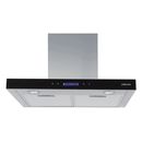 Campana de extracción de 60 cm de ancho con opción de ser utilizado como purificador de aire sin salida al exterior. Color Acero inoxidable con su frente de vidrio templado en color negro. Panel de control soft touch con display digital y timer programable en el frente. Capacidad de extracción de 75...