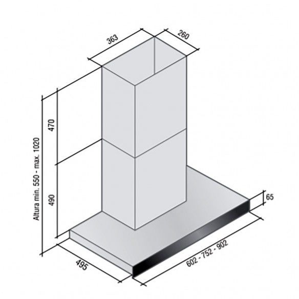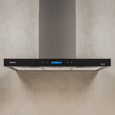 Comando touch 3 velocidades . Timer reloj . Iluminacion spot led s . Modelo 60-75 1 x 2 w . Modelo 90 2 x 2 w . Motor 200 watts . Caudal 800 m3h . Acero inoxidable .