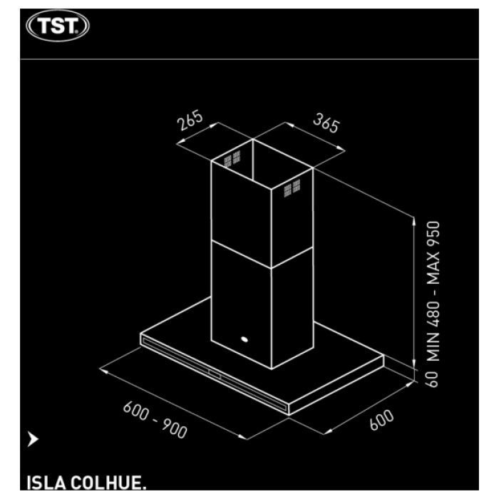 Campana extractor cocina isla TST Colhue 60cm en acero inox. Caracteristicas: marca TST. Modelo Colhue 60. Motor interno 6 pulgadas de alto rendimiento y bajo nivel sonoro. Comando touch con display y timer programable. Iluminacion tecnologia led. Potencia del motor 182 W. Acabado acero inoxidable e...