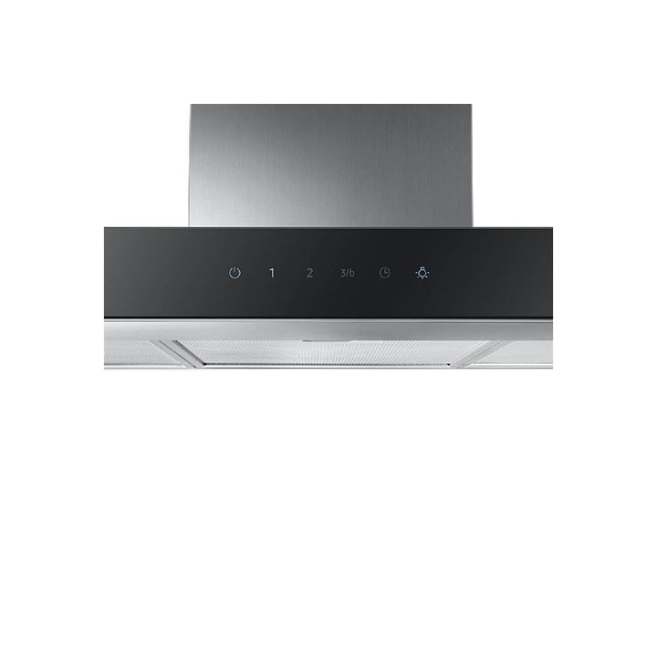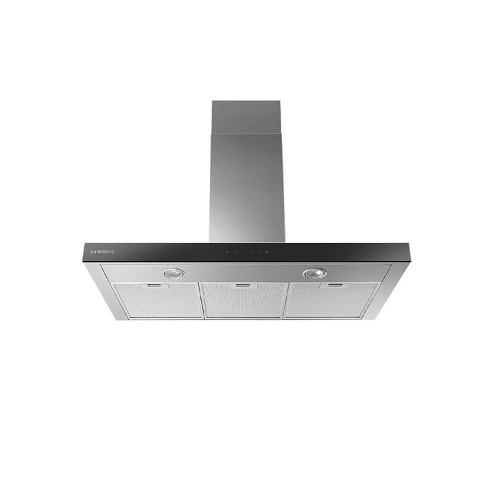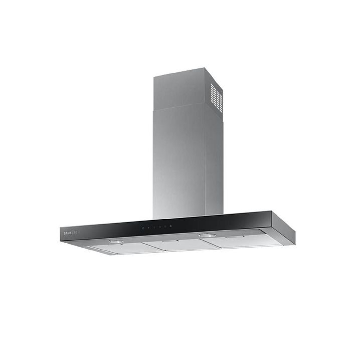 Características generales Marca: Samsung Modelo: NK36M5070BS Color: Gris Peso y dimensiones Ancho x Altura x Profundidad: 90 cm x 110 cm x 45 cm Peso: 17.9 kg Otros Incluye control remoto: No Especificaciones Función: Campana Materiales: Acero inoxidable y vidrio negro Con salida: No Número de veloc...