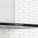 Motor interno 6 de bajo nivel sonoro. Comando touch con display y timer. Iluminacion tecnologia led. Acabado acero vidrio negro templado. Cubre cano extensible. Filtro metalico lavable. Industria nacional.