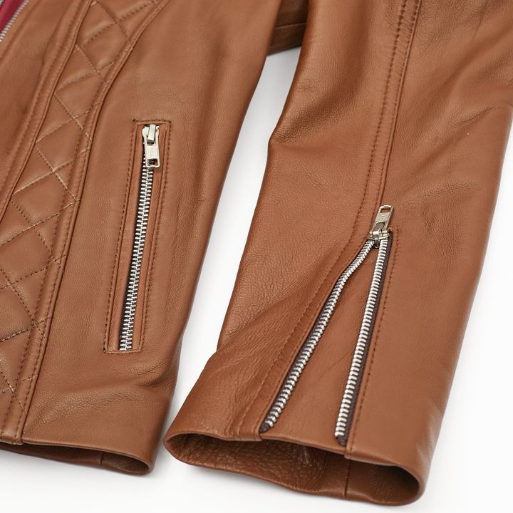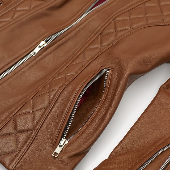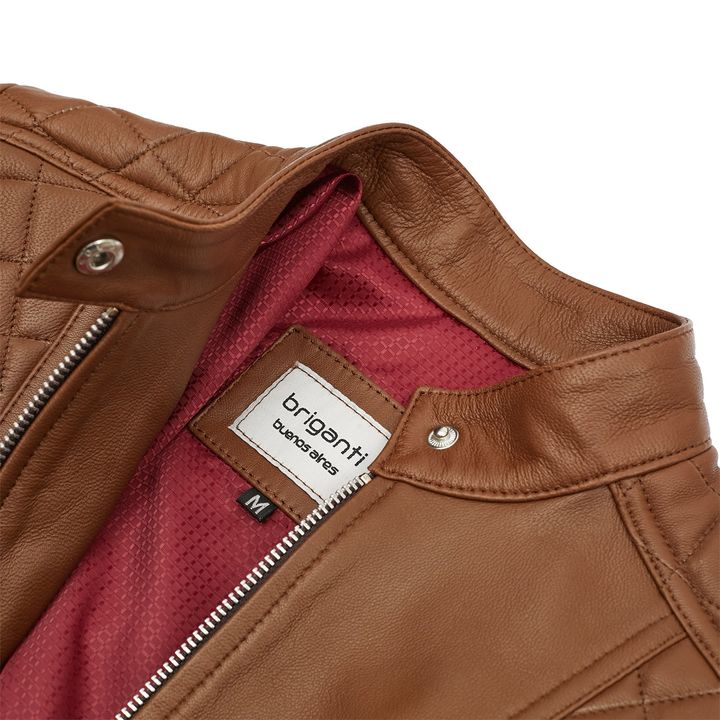 Campera Leah de mujer fabricadas con cuero marron de primera calidad. Diseñada para quienes buscan darle un toque canchero a sus looks. ¡Crea tendencia por donde quiera que vayas! - Marca: Briganti - Articulo: MMCP90150 - Material Externo: Cuero