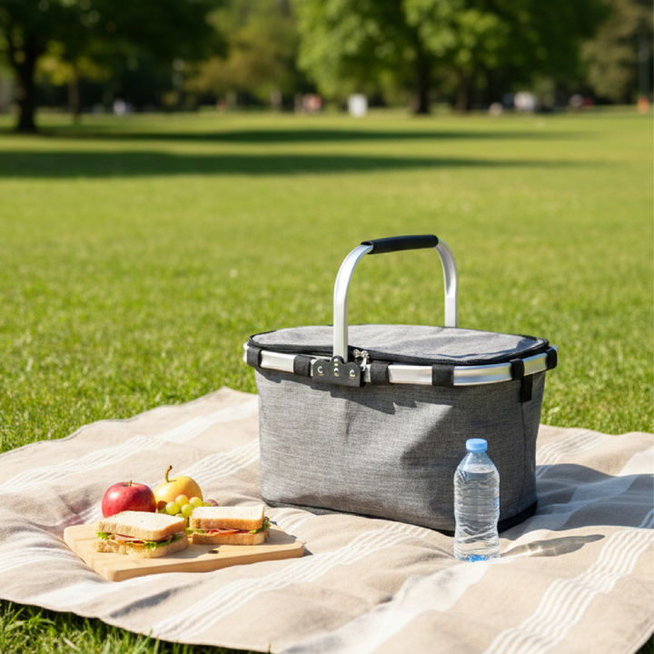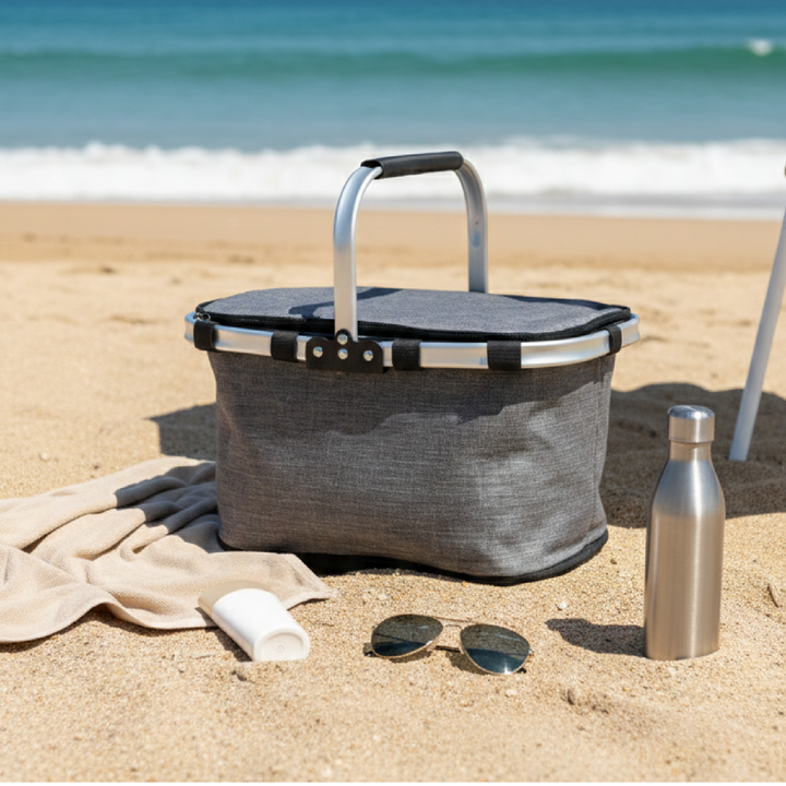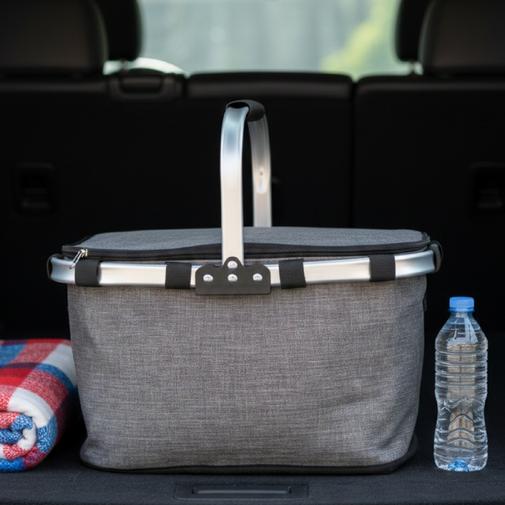 Canasta Térmica Gris con Manija – Ideal para Picnic y Viajes