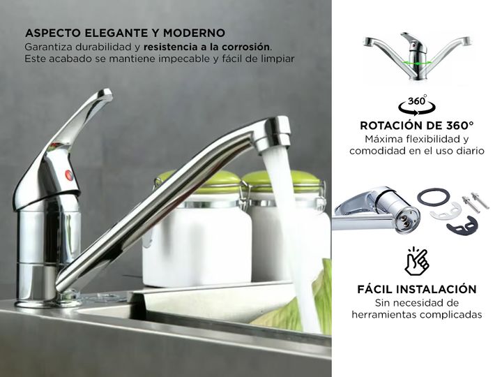 Mejora tu cocina o baño con nuestra canilla monocomando de alta calidad, diseñada para ofrecer tanto funcionalidad como estilo. Con una rotación de 360°, esta canilla proporciona máxima flexibilidad y comodidad en el uso diario, permitiendo un acceso completo a todas las áreas del fregadero. El acab...