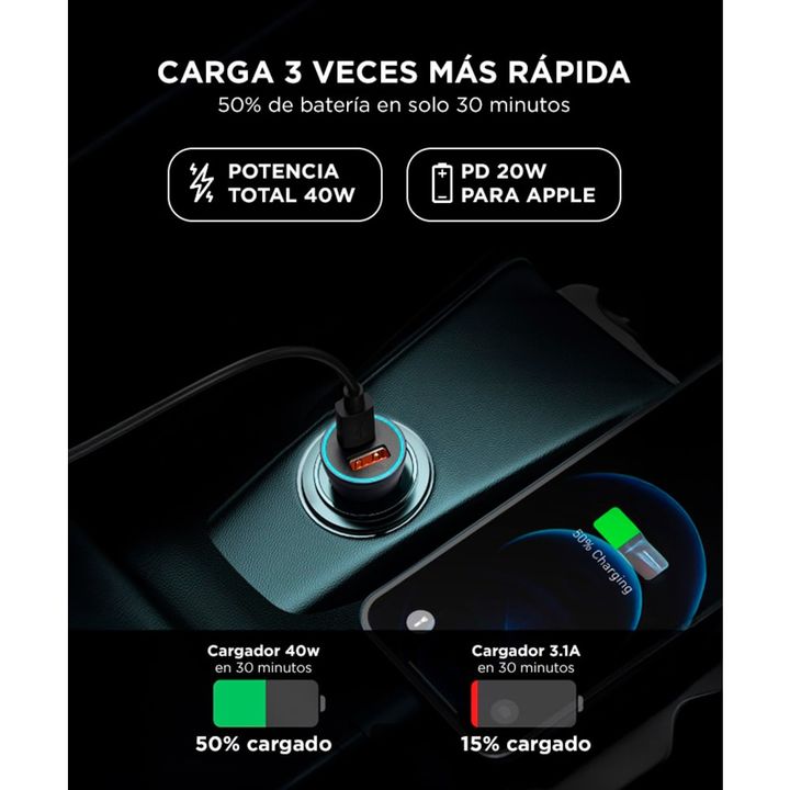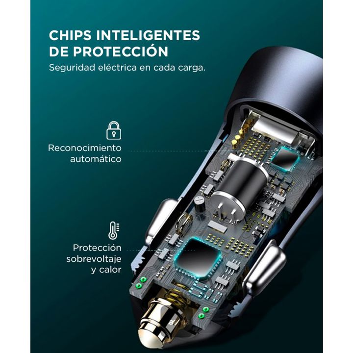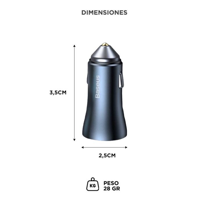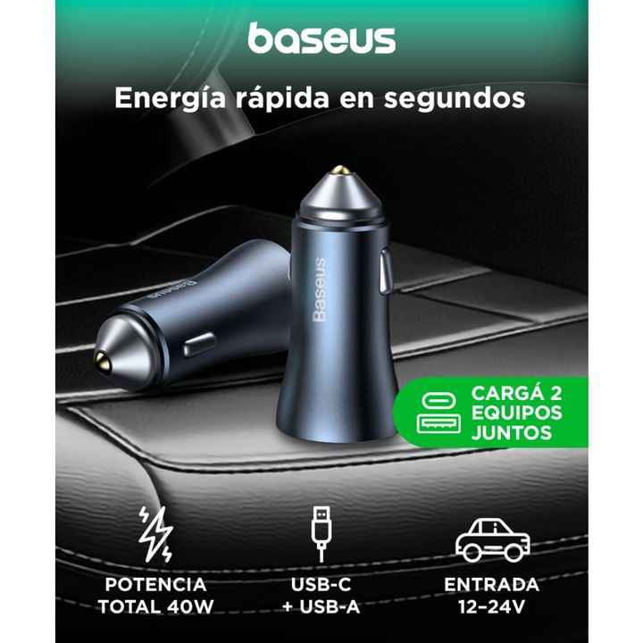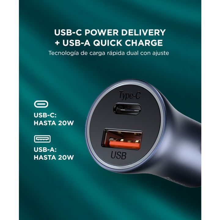 Carga rápida y segura en tu vehículo El Baseus Golden Contactor Pro Dual Quick Charger ofrece una potencia total de 40W, con dos puertos independientes de 20W cada uno (USB-A y USB-C). Perfecto para cargar teléfonos, tablets y gadgets al mismo tiempo. Compatibilidad universal con protocolos rápidos ...