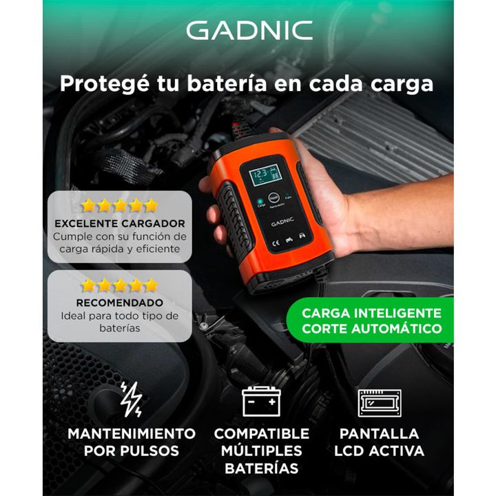 Gadnic presenta el nuevo cargador de batería para auto/moto: Capacidad de Carga: Salida de 12V 6A, adecuada para baterías de ácido-plomo de 12V. Potencia de Salida: 75W, permitiendo una carga rápida y eficiente. Entrada: AC 100-240V 50/60Hz, compatible con voltajes globales. Pantalla LCD: Muestra el...