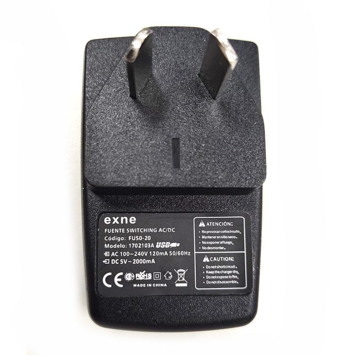 Cargador FU50-20 (5V 2A) USB Adaptador de pared USB Especificaciones - ENTRADA: AC 100~240V 50-60Hz. - SALIDA: DC 5V - POTENCIA: 2000mA. - CONSUMO: 10W. - CONECTOR DE SALIDA: 2.1 mm. CONDICIONES DE TRABAJO: - TEMPERATURA: -10/+40 C - HUMEDAD: 10-90% RH - EFICIENCIA: > 85% - RANGO DE FALLA: < 1% Cara...