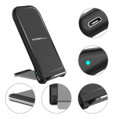 SOPORTE DE CARGA INALÁMBRICA RÁPIDA ARGOMTECH - ARG-AC-0140BK - A00442 El cargador inalámbrico rápido plegable admite todos los dispositivos habilitados para carga inalámbrica Qi, como las series Samsung Galaxy, Google Pixel, Apple iPhone y otros. Este cargador inalámbrico rápido tiene un diseño ele...