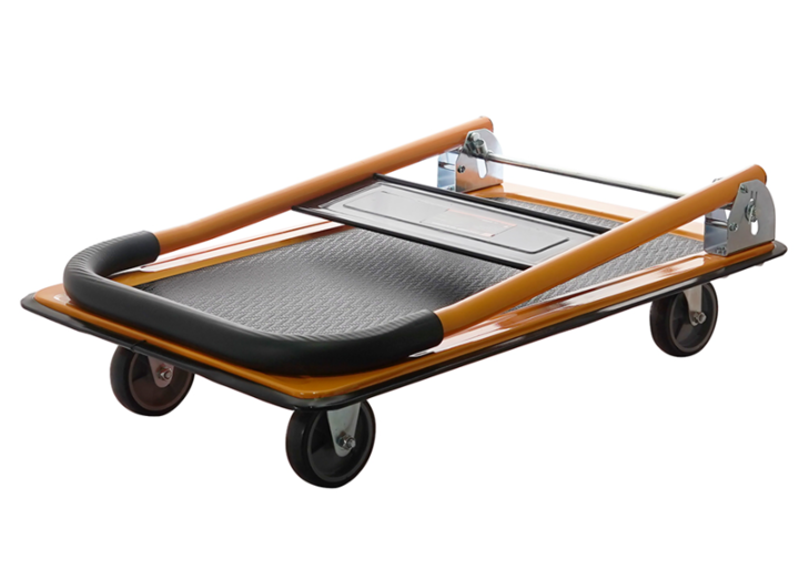Carga máxima: 150 kg. • Material: acero al carbono • Base: antideslizante • Rueda: TRP 4 MEDIDAS • Altura total: 84 cm. • Altura desde base al mango: 69 cm. • Largo de plataforma de apoyo: 66 cm. • Ancho de plataforma de apoyo: 48 cm. • Alto rebatido: 22 cm. • Tubos y plataforma fabricados en acer...