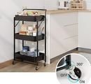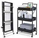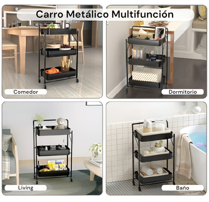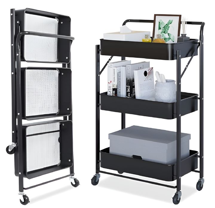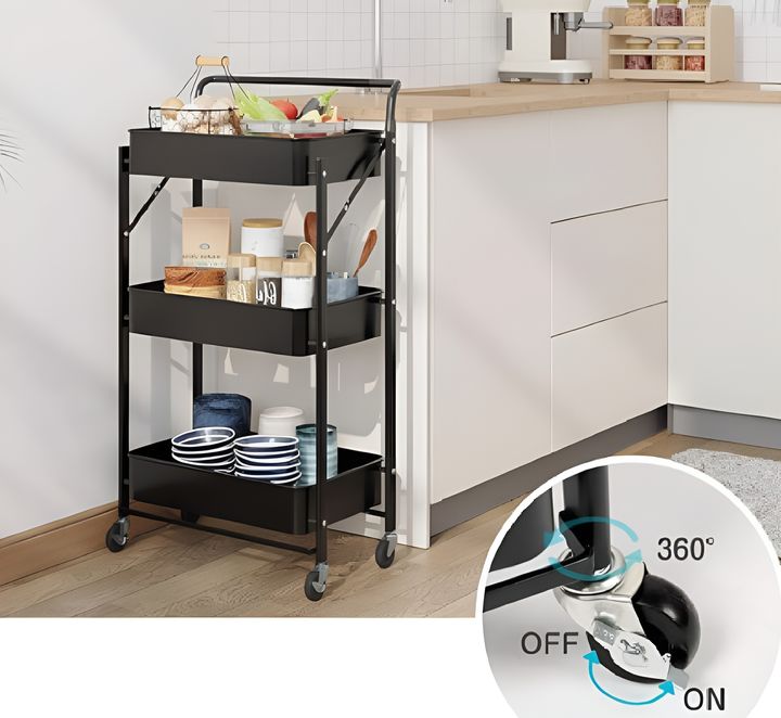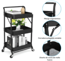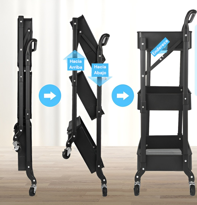 HOGAR ACTUAL CARRO METALICO PLEGABLE 3 ESTANTES C/MANIJA SKU: 142571 Resistente y estable: el marco del carrito de almacenamiento rodante está hecho de acero al carbono de alta calidad y las bandejas son de plástico ABS que tiene la característica de anticorrosión, impermeable y resistente a los ara...