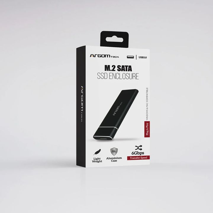 CARRY DISK ARGOMTECH M.2 SATA SSD USB 3.0 - ARG-AC-1036 - A00419 Coloque su disco duro interno B Key SSD SATA en esta liviana carcasa de aluminio con una interfaz USB 3.0 y transfórmela en una solución HD externa portátil con velocidades de transferencia de datos de hasta 6 Gbps. Esta copia de segur...