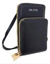 Espectacular bandolera porta celular touch.Confeccionada en cuero PU premium liso. Consta de 2 cuerpos cada uno con cierre. Totalmente forrada El cuerpo trasero tiene 3 ranuras para tarjetas y 2 divisiones. Apto para celulares de hasta 18x9 cms.Trasera con placa transparente touch que permite el uso...