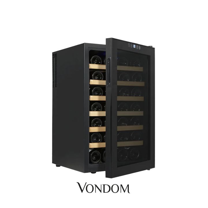 CAVA DE VINOS VONDOM PARA 28 BOTELLAS CON ESTANTES DE MADERA Marca:Vondom Código: T28MADERA Cava ideal para vinos tintos en condiciones óptimas de guarda. Dadas sus dimensiones puede ir perfectamente sobre un mueble o una mesada. La cava T28 cuenta con capacidad para 28 botellas estándar de 750ml y ...