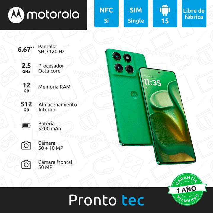 El motorola Edge 60 cuenta con un diseño super cómodo y atractivo que te sorprenderá. Con la primera pantalla Quad-Curved 1.5K con colores validados por Pantone y una terminación que inspira. Construido con cuatro capas de fibra de vidrio, combinando estilo y durabilidad con acabados en textura de c...
