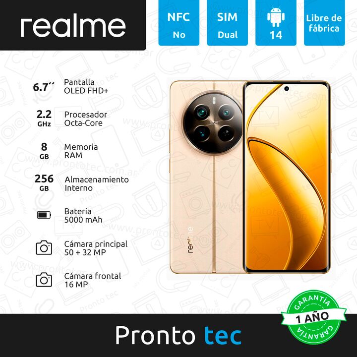 CARACTERÍSTICAS: - Marca: Realme - Modelo: 12 Pro - Pantalla: 6,7´´ FHD+ - Tecnología de pantalla: OLED - Resolución: 1080 x 2412 px - Tasa de refresco: 120 Hz - Núcleos del procesador: 8 - GPU: Qualcomm Snapdragon 6 Gen 1 (2.2 Ghz) - Memoria: 8 GB - Almacenamiento: 256 GB - Lector de tarjetas de me...