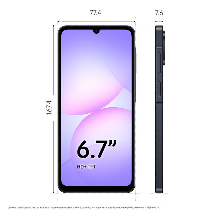 Samsung Galaxy A07 combina una pantalla amplia, un rendimiento equilibrado y una batería potente pensada para acompañarte todo el día. Es un equipo ideal para quienes buscan una experiencia completa sin pagar de más, con la calidad y confianza de Samsung. Pantalla grande para disfrutar más Viví tus ...