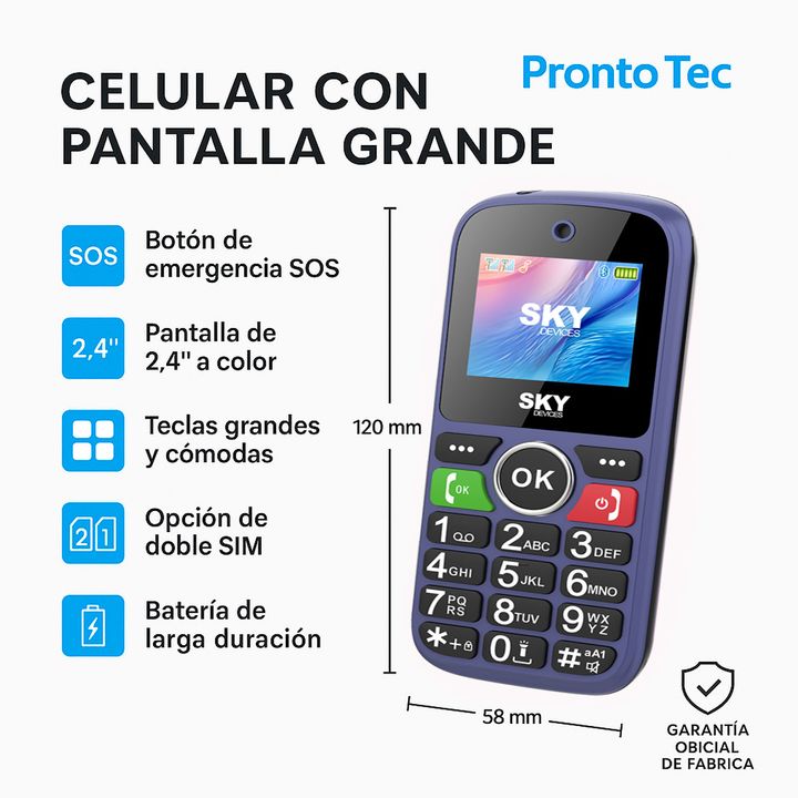 Disfrutá de un diseño simple y un teléfono con todo lo que necesitas en un solo lugar para hacer tus llamadas o mandar mensajes Mantenete siempre en contacto gracias a la opción de doble tarjeta SIM que te permite tener 2 cuentas telefónicas en el mismo equipo. CARACTERÍSTICAS: - Marca: Sky - Modelo...