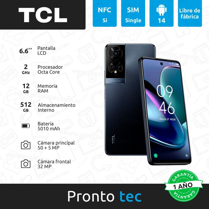 CARACTERÍSTICAS: - Marca: TCL - Modelo: 50 5G - Pantalla: 6,6´´ HD+ - Tecnología de pantalla: LCD - Resolución: 720 x 1612 px - Núcleos del procesador: 8 - GPU: Octa-core MTK MT6835 2.2 GHz - Memoria: 4 + 4 GB - Almacenamiento: 128 GB - Lector de tarjetas de memoria: Si, Micro SD hasta 2 TB - Cámara...