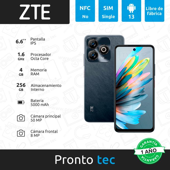 CARACTERÍSTICAS: - Marca: ZTE - Modelo: V60 Smart - Pantalla: 6,6´´ HD+ - Resolución: 1612 x 720 px, 90 Hz - Núcleos del procesador: 8 (1.6 GHz) - GPU: Unisoc T606 - Memoria: 4 GB (Fusion RAM 10 GB) - Almacenamiento: 256 GB - Lector de tarjetas de memoria: Si, Micro SD hasta 1 TB - Cámara principal:...