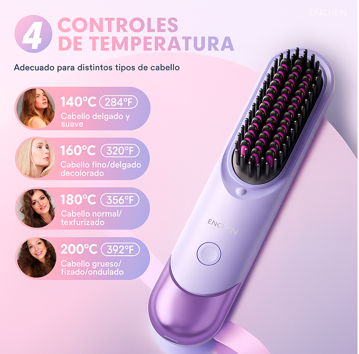 ENCHEN CEPILLO ALISADOR DE CABELLO H100 SKU: H100 LILIAC SKU: H100 PINK Alisado rápido, sin esfuerzo y sin maltratar tu cabello El ENCHEN H100 es el aliado perfecto para lograr un cabello liso, brillante y sin frizz en minutos. Diseñado con tecnología avanzada y materiales de alta calidad, este ce...