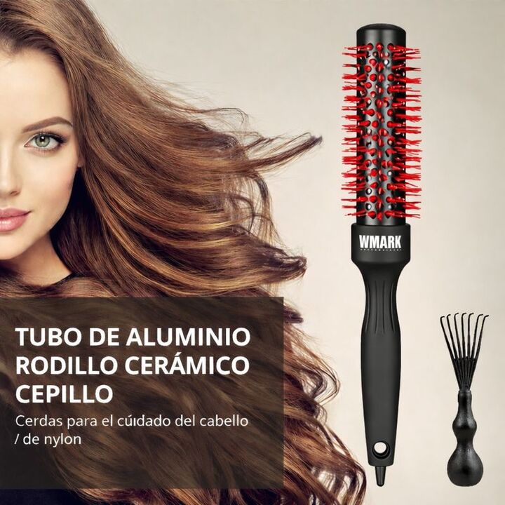 CEPILLO REDONDO PARA EL CABELLO WMARK TAMAÑO: #25MM SKU: NG-HB001A EAN: 6971196419126 Material principal: ABS, cuerpo de aluminio con cerdas de nailon. Efecto antifrizz y antiestático para un cabello más brillante y suave. Tamaño: n.° 25
