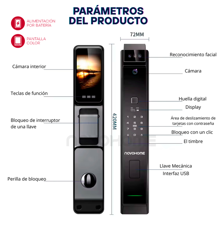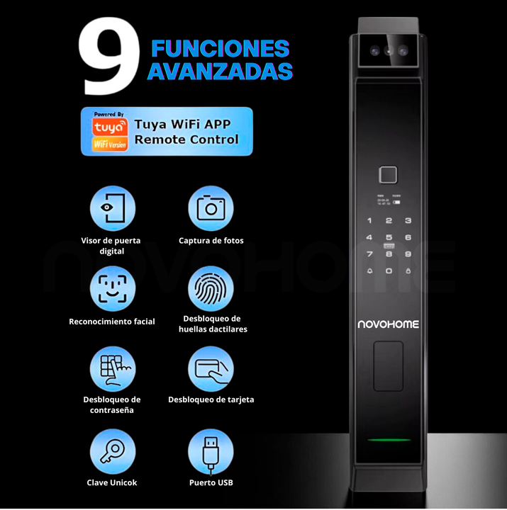 NOVOHOME CERRADURA SMART SKU: NH-SL45 Tecnología diseñada para tu tranquilidad. La cerradura Smart con reconocimiento facial y tecnología Tuya es un avanzado dispositivo de seguridad diseñado para puertas residenciales o comerciales que demandan un alto nivel de protección. Incorpora múltiples métod...