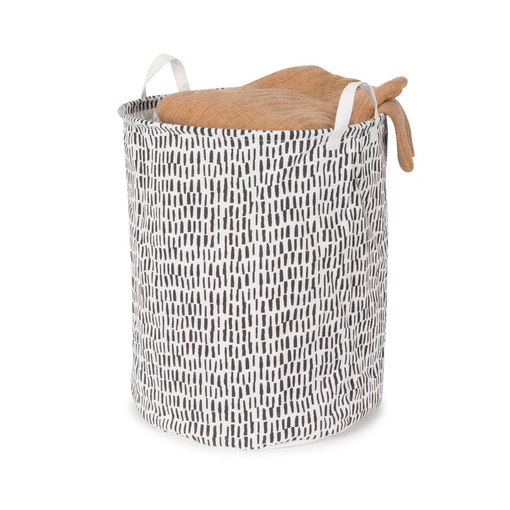 Cesto organizador de tela Ideal para guardar la ropa sucia, juguetes, productos para bebés y mascotas. Costuras resistentes y durables, se puede plegar cuando no está en uso. > Medidas: 38cm diámetro; 48cm alto > Composición: 100% poliéster > Resistente y fácil de lavar Origen: China