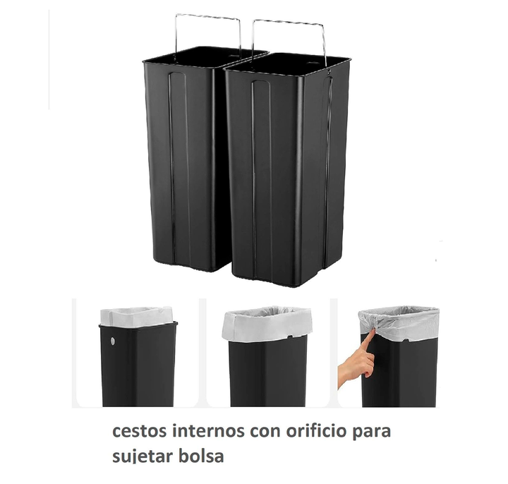 HOGAR ACTUAL CESTO DOBLE NEGRO 30 LT CIERRE SUAVE SKU: 142940-N Descripción Cesto Doble Residuos 30l Cierre Suave Tacho Basura Acero B Color Blanco Elegante diseño del Cesto Doble extraíble para almacenaje y reciclaje de residuos. Sus 2 recipientes interiores le otorgan una capacidad total de hasta ...