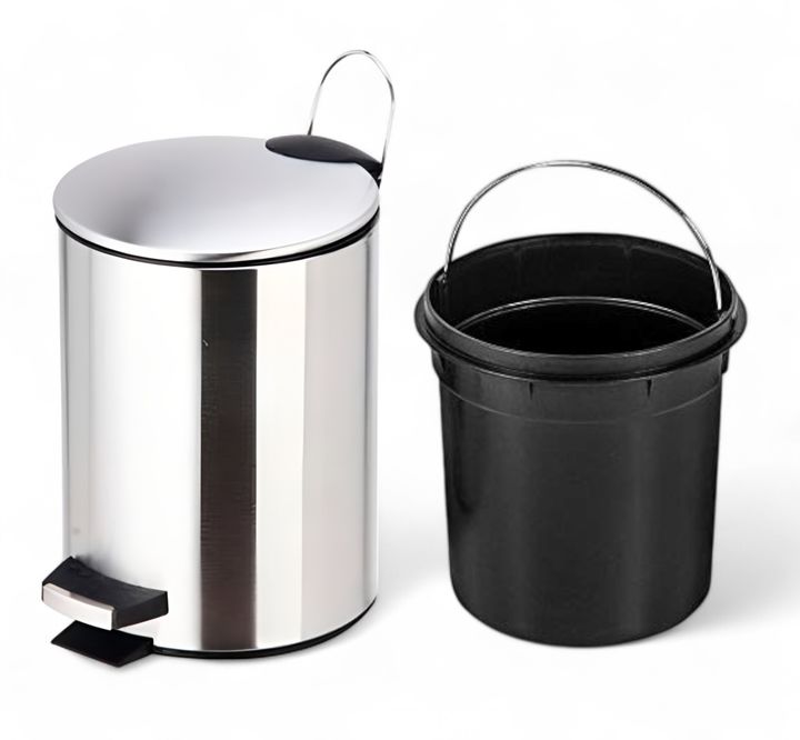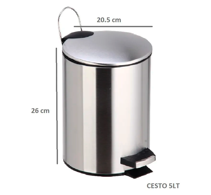 HOGAR ACTUAL CESTO DE RESIDUOS ACERO INOX. 5 LTS SKU:142914 CESTO RESIDUOS 5 LTS ACERO INOXIDABLE ACABADO SIMIL ALUMINIO Material: Acero Inoxidable Acabado mate simil aluminio Modelo : con pedal Medidas : Alto 26,5 cm Diámetro 20cm Altura con la tapa abierta : 44cm Contiene un recipiente interior de...