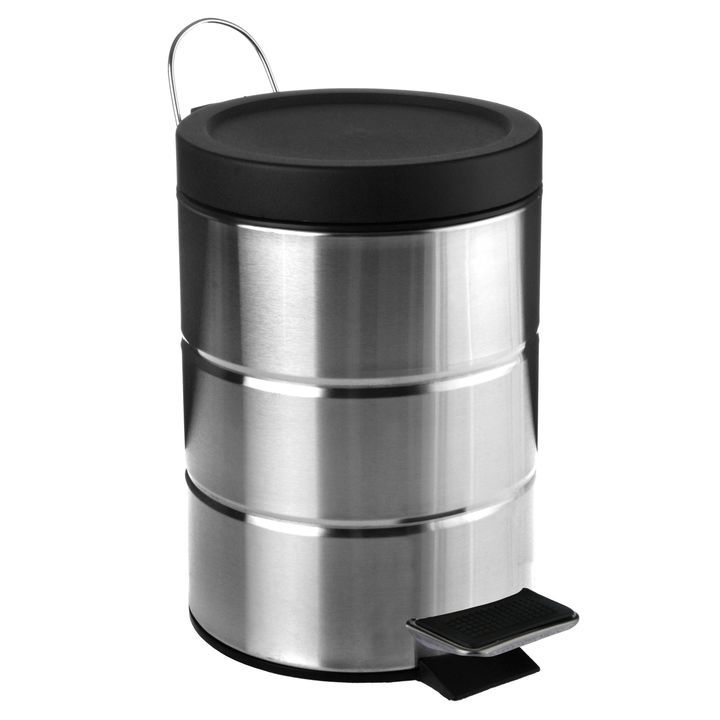 Cesto de Acero inoxidable con Pedal y tacho plástico extraíble Acero inoxidable con detalles en PVC plástico negro mate color -Capacidad: 3 litros - Pedal - Manija en el balde interior - Medidas exteriores: 24 cm Altura x 17 cm de diámetro Total -Medida recipiente plástico: 20 cm altura x 15.5 diám...