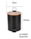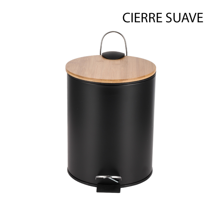 HOGAR ACTUAL CESTO DE RESIDUOS ACERO DE 3LTS NEGRO ACABADO MATE TAPA DE BAMBOO C/SUAVE SKU: 142917-N El Cesto Tacho Basura Pedal 3 Lts Acero Pintado Tapa Bambú es la solución perfecta para mantener tu hogar limpio y ordenado. Fabricado con acero pintado de alta calidad, este cesto de residuos combin...