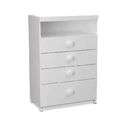 Chiffonier con estructura de melamina, y frentes laqueados. Posee 4 ruedas giratorias de 50 mm para facilitar el desplazamiento. Ideal para lugares pequeños, y para utilizar debajo de las cuchetas rinconeras. Cuatro cajones con correderas metálicas. El último cajón es de mayor tamaño brindando mayor...