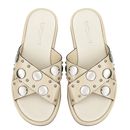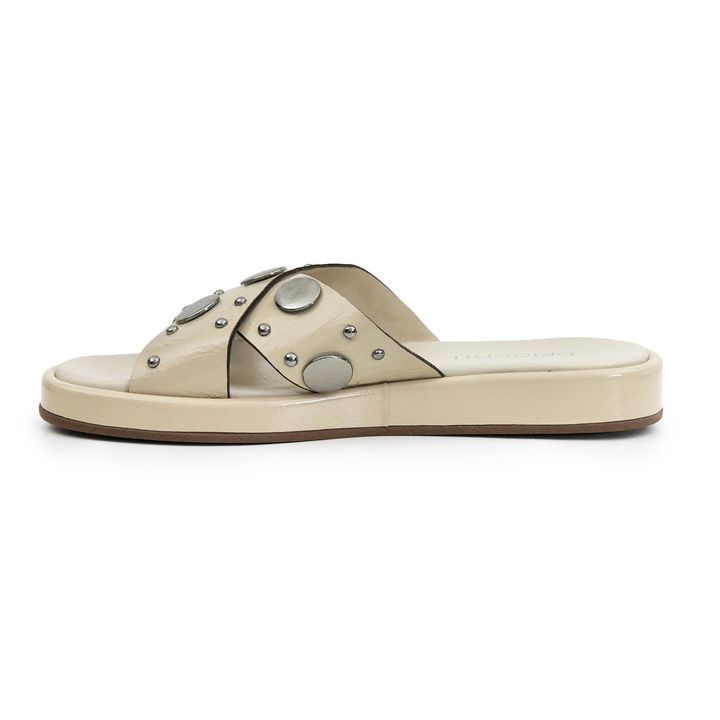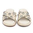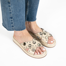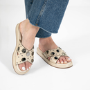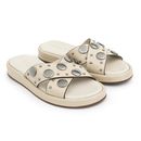 La Chinela Alia es el equilibrio perfecto entre estilo y comodidad. Confeccionada en 100% cuero, cuenta con base de goma antideslizante y plantilla acolchada que asegura una pisada suave. Su diseño moderno con apliques circulares aporta un toque original y divertido, ideal para acompañar looks casua...