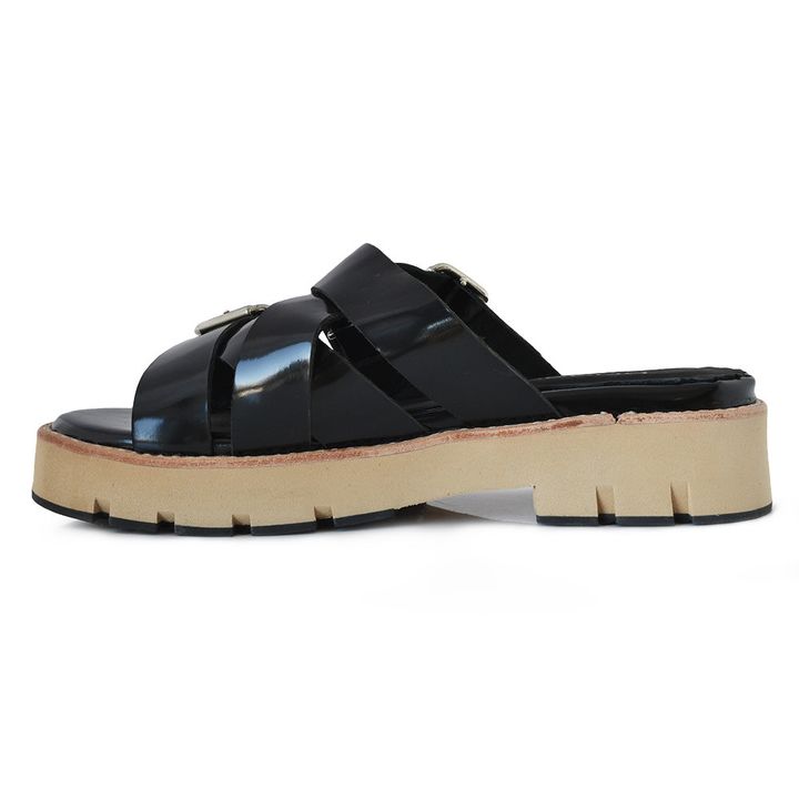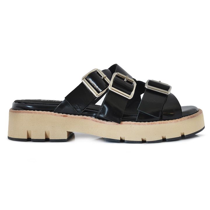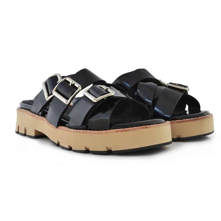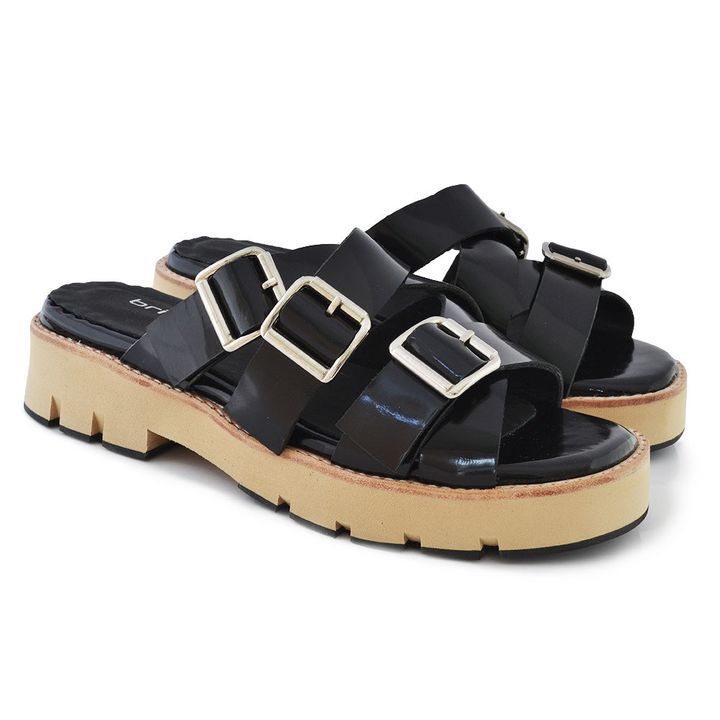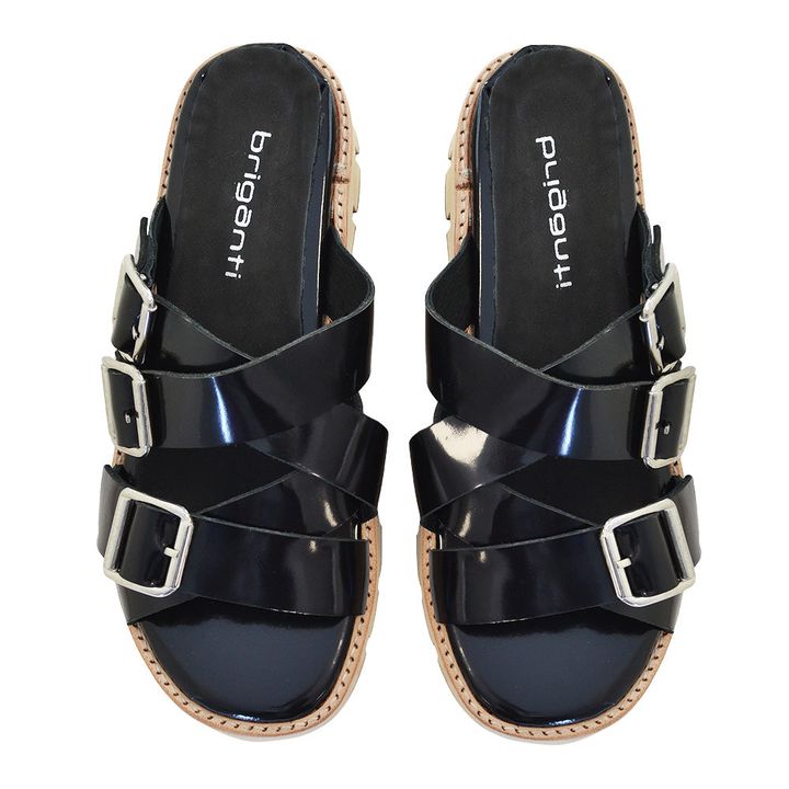 Chinelas fabricadas en cuero charol de primera calidad. Su suela de goma les aporta durabilidad y flexibilidad. Crearás tendencia esta temporada. - Base: Goma - Material Interno: Cuero - Material Externo: Cuero Charol - Articulo: MCCH26064 - Horma: Estándar - Marca: Briganti - Altura Taco: 4 cm.
