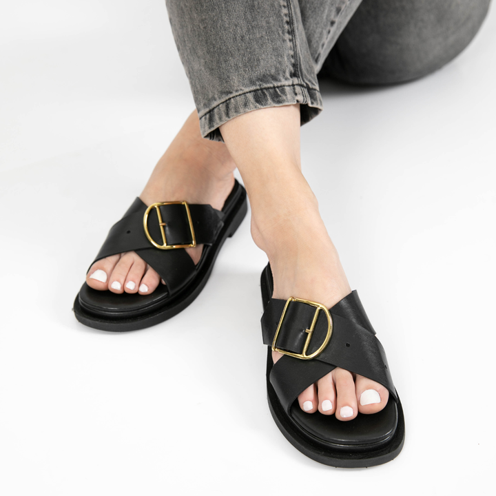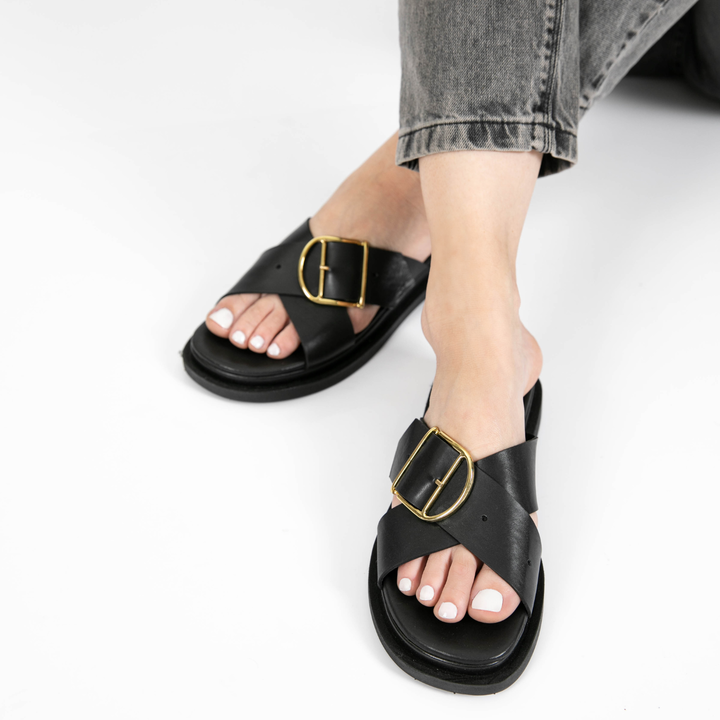 La Chinela Celine combina elegancia y comodidad en un diseño que marca tendencia. Confeccionada en 100% cuero, presenta una base de goma antideslizante y tiras cruzadas que se ajustan con una hebilla delicada y moderna. Un modelo casual con un toque juvenil, ideal para quienes buscan estilo sin esfu...