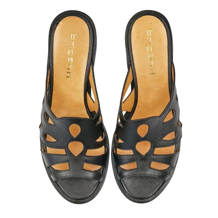 Chinelas de mujer fabricadas con cuero de primera calidad. Con estas chinelas vas a poder asegurar delicadeza y elegancia a tu look de día. Animate! - Base: Suela - Material Interno: Cuero - Material Externo: Cuero - Articulo: MCCH26121 - Horma: Estándar - Marca: Briganti - Altura Taco: 5 cm.
