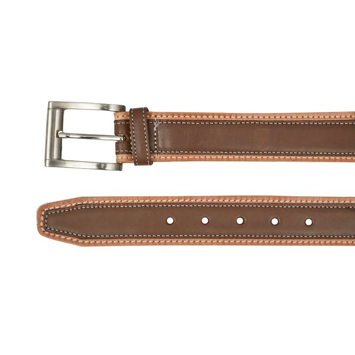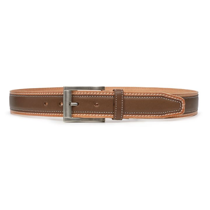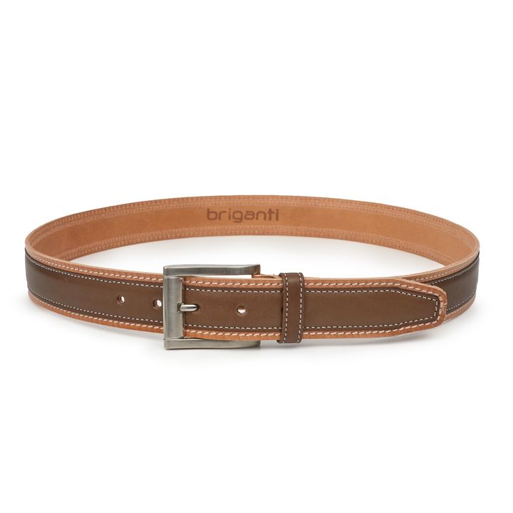 Cinturón de hombre fabricado en cuero color marrón de primera calidad. Su diseño hace que los colores del cuero contrasten y formen una pieza distinguida que definitivamente hará que cualquiera de tus atuendos luzca único. - Marca: Briganti - Material Interno: Cuero - Material Externo: Cuero - Artic...