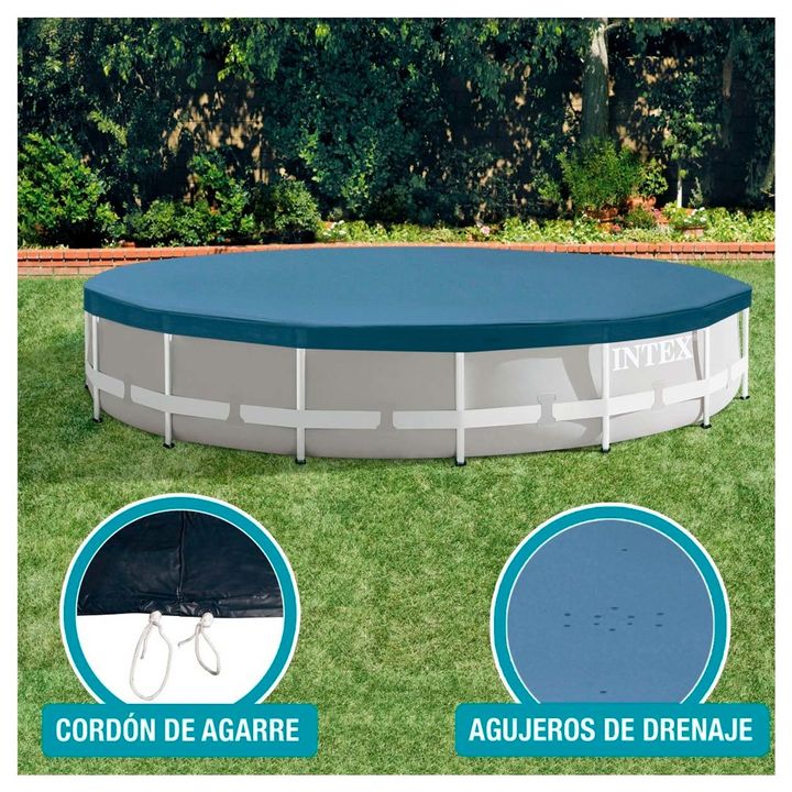 CARACTERÍSTICAS: - Marca: Intex - Material: Vinilo - Dimensiones (AnxAlxPr): 366 x 25 x 366 cm - Peso: 3,1 Kg - Garantía oficial CONTENIDO DE LA CAJA: - Parches de reparación //////////////////////////////////////////////////////////////// 6 MESES DE GARANTÍA OFICIAL DE FÁBRICA.