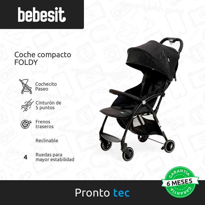El cochecito compacto Foldy cuenta con una estructura ultraliviana, un asiento acolchado y un barral protector acolchado para mayor seguridad. Con su capota con 3 posiciones para que elijas, la opción de reclinarlo en diferentes posiciones dependiendo de que tan recostado queres que este, y el siste...