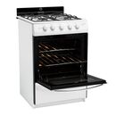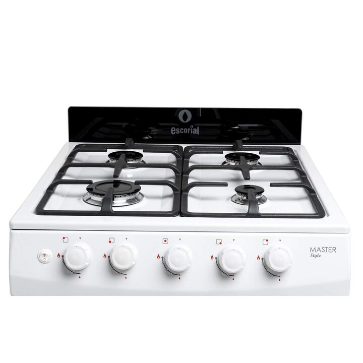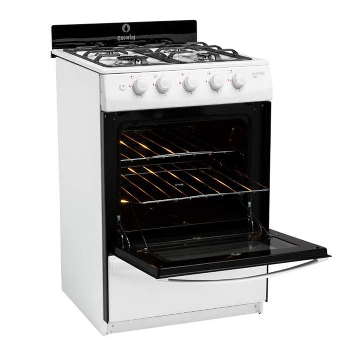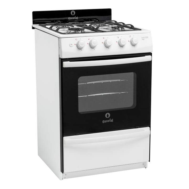 Color: Blanco Medidas: 95cm (Al) x 56cm (An) x 60cm (Pr) Encendido de una mano- Reja de fundición. Blanca con laterales del mismo color y tapa de horno de vidrio negro. Encendido de una Mano y Luz en Horno. Reja de fundición. Nuevo y renovado diseño. Respaldo de vidrio. Sistema Multigas (gas natural...