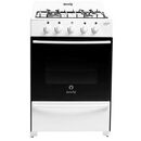 Color blanco con laterales del mismo color y puerta de horno de vidrio en negro. Sistema Gas envasado. Puerta horno de Vidrio y reja de horno esmaltada. Superficies exteriores e interior del horno totalmente enlozados en polvo electrostático de fácil limpieza. Rejilla desmontable en plancha. 4 horna...