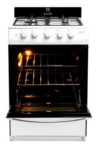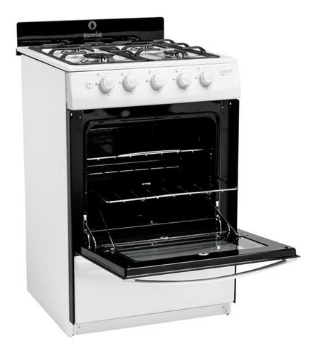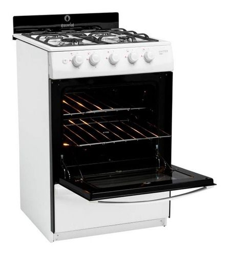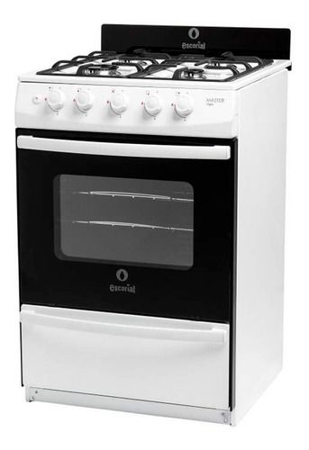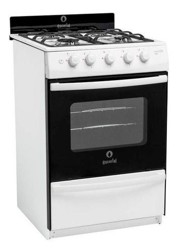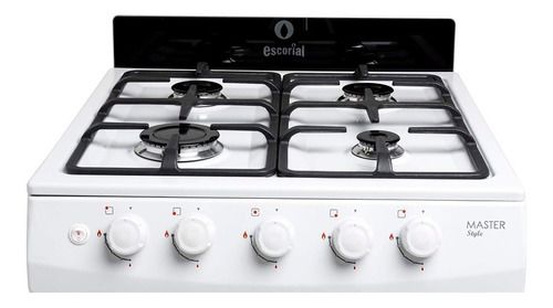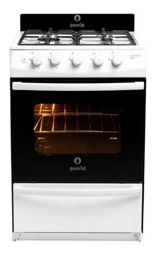 COCINA ESCORIAL MASTER STYLE - MASTERSTYLEBL - Color: Blanco - Medidas: 93cm (Al) x 56cm (An) x 60cm (Pr) - Encendido de una mano- Reja de fundición. Características - Blanca con laterales del mismo color y tapa de horno de vidrio negro. - Encendido de una Mano y Luz en Horno. - Reja de fundición. -...