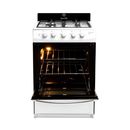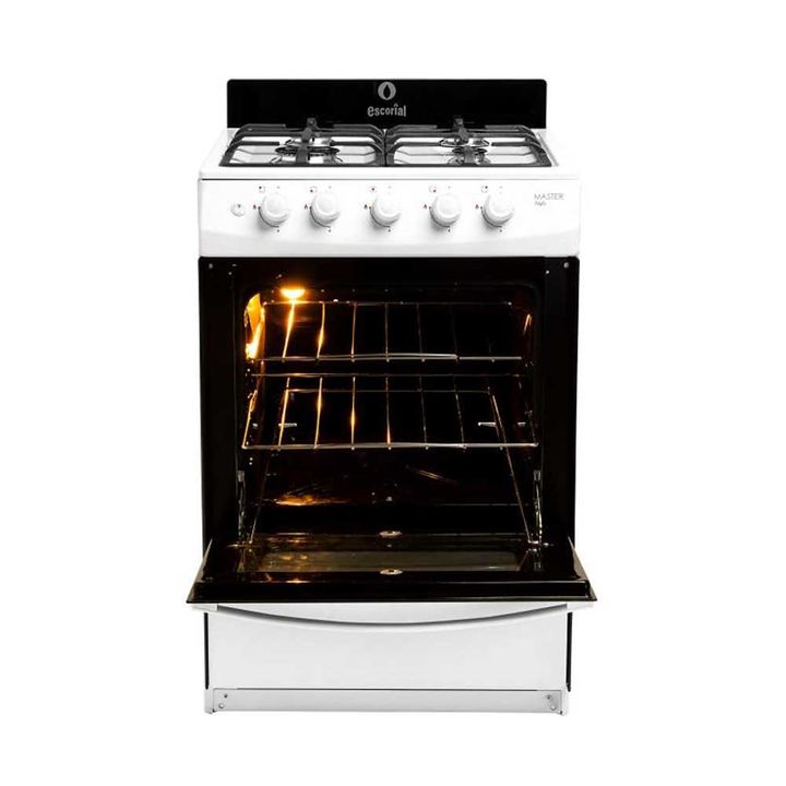 Encendido electrónico para mayor comodidad y 4 quemadores multigas para cocinar de forma rápida y eficiente. Cuenta con puerta de horno con doble vidrio para mejor aislamiento térmico y luz interior que permite ver la cocción sin abrir la puerta. Un diseño robusto y funcional para el día a día en la...