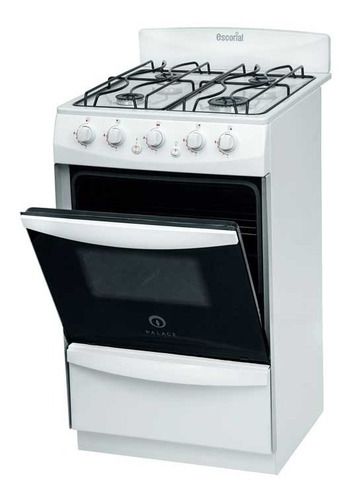 Cociná con comodidad y seguridad con la cocina Escorial Palace de 50 cm a gas envasado. Cuenta con 4 quemadores, horno con visor, válvula de seguridad en horno y hornallas, y eficiencia energética A. Diseño de pie en color blanco, ideal para cualquier cocina. | Código Interno: 450562 | Modelo: Palac...