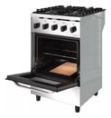 La cocina industrial Saho Kuma 550 de 55 cm cuenta con 4 hornallas multigas y horno de 61 Lts. con interior enlozado, ladrillos refractarios y puerta con visor. Incluye válvula de seguridad en el horno y rejas vitrificadas, combinando eficiencia energética A con practicidad y durabilidad para uso pr...