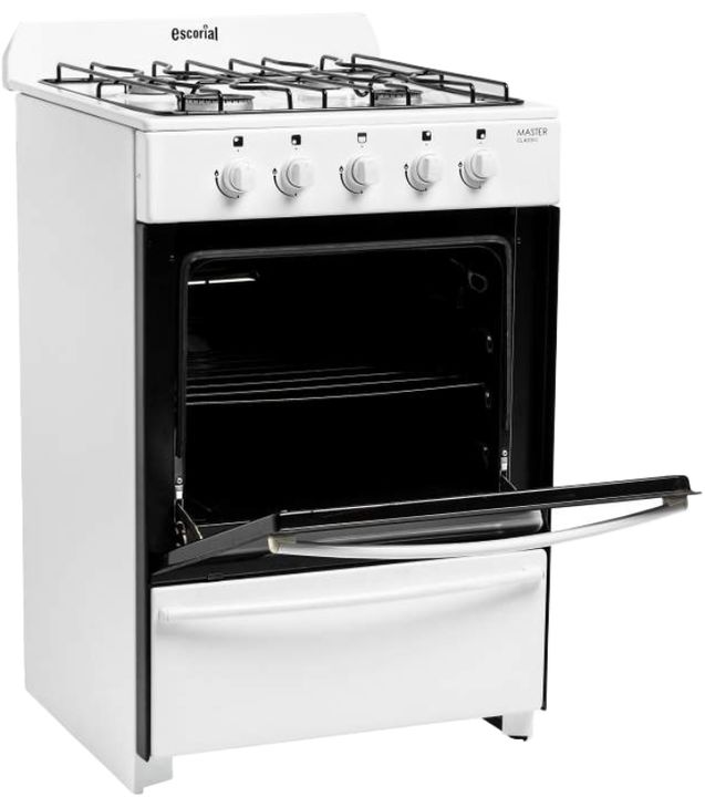 COCINA MASTER CLASSIC 56CM VS GE BL ESCORIAL -Cocina a Gas Licuado (Gas Envasado) -4 Hornallas (3 medianas y una grande) -Quemadores de aluminio pulidos con tapa de acero esmaltada -Válvula de seguridad en hornallas y horno -Puerta horno de Vidrio y reja de hornoesmaltada -Manija de horno y parrilla...