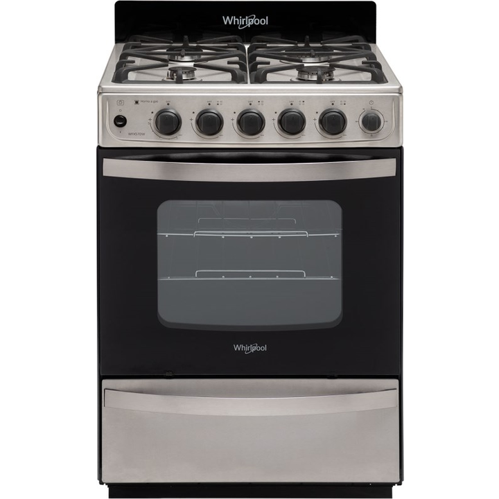 -COCINA BIGAS 55CM WFX57DI WHIRLPOOL -Cantidad de Hornallas 4 -Interior Material - Inoxidable -Grill -Timer -Color Acero Inoxidable -Valvula de Seguridad Si -Conexion: Multigas -Encendido a una mano hornallas: Si -Encendido a una mano horno: Si -Rej