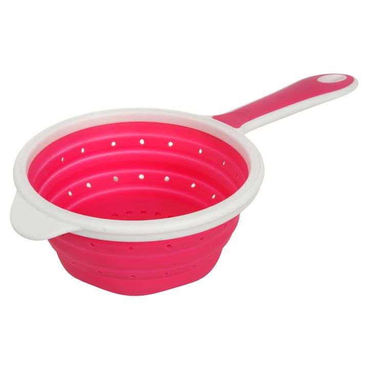 Colador de silicona plegable con mango Ideal para ahorrar espacio Diametro: 12cm Profundidad: 5cm Largo: 25cm BPA FREE Aprobado por Instituto Nacional de Alimentos (INAL). ANMAT Resiste -40°a 200°c Apto para microondas Apto para lavavajillas No se pega Origen: China